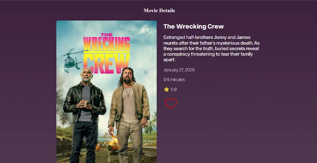 Built the application using React with a component-based architecture. Developed reusable UI components for movie cards, sliders, filters, and detail views.